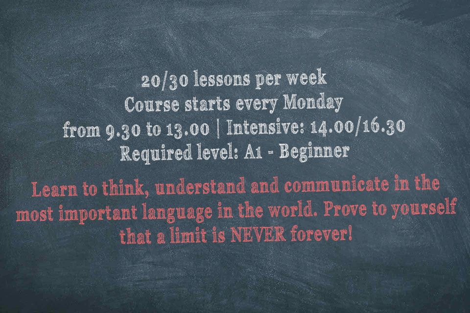 This is the most popular course and it involves teaching improving grammar skills, the understanding, vocabulary, pronunciation, language structure as well as everyday English expressions and colloquialisms. This type of course aims to progressively improve the ability to understand the language; therefore, enabling students to communicate effectively in English in a variety of real-life situations. The standard course (20 lessons per week) is offered at all levels; starting from beginner to advanced. It includes learning the fundamentals of the language: the written form (composition) and the oral form (comprehension and expression), while the intensive course (30 lessons per week), which also includes an afternoon lesson in a smaller number of participants, is specially designed for those wanting to achieve language progress as quickly as possible.